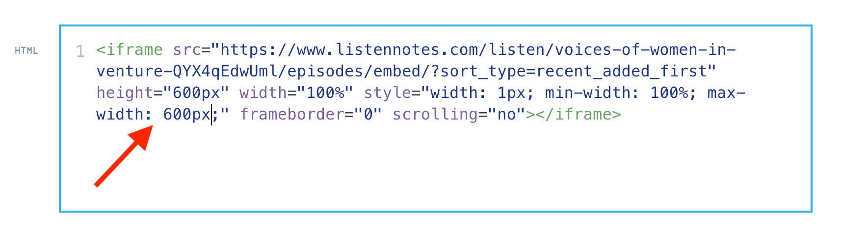 For further customisation of your embedded content, you can also use the embed code from Listen Notes.